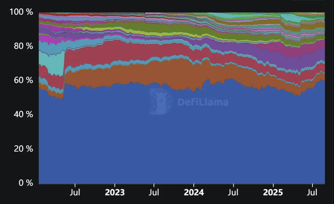 DeFi’s center of gravity remains Ethereum: L1 holds roughly 60% of TVL and Ethereum L1+L2 about 70%, a share that has barely shifted in three years—classic power-law network effects. The 2024–2025 meta is stablecoins, with market cap near $300B and payment volumes rivaling Visa, as policy clarity (e.g., the GENIUS Act) opens the door to broader adoption. At the same time, institutional flows—ETFs, digital asset treasuries, and tokenized RWAs—are reshaping market structure, while LSTs/LRTs supply the base yield powering carry trades across lending, perps, and DEXs. This piece maps the leaders in each category and explains how reflexivity ties prices, leverage, and TVL into what feels like a second DeFi summer.