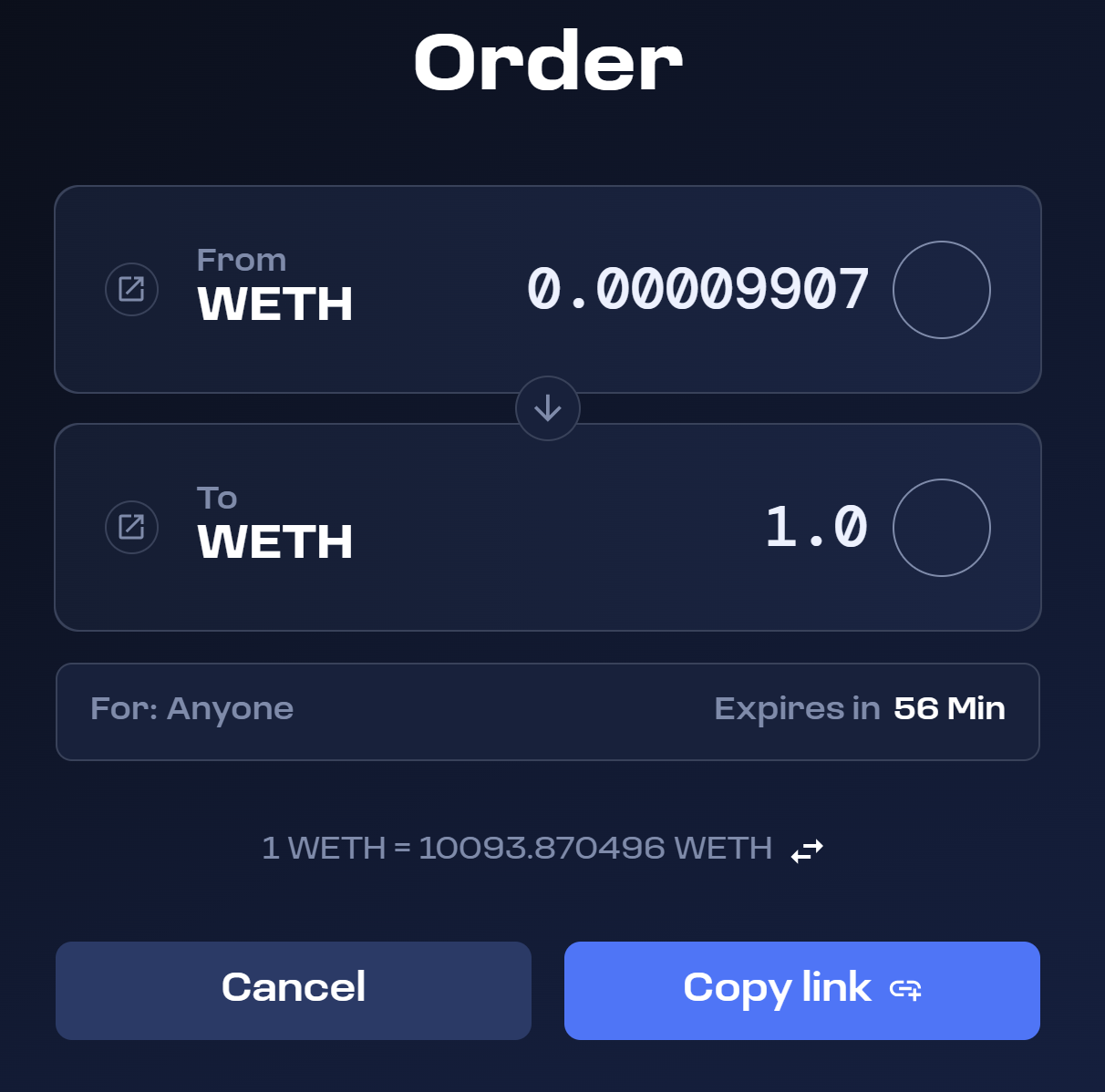 Send the order link to the counterparty purchasing the Swap Tokens so they can take the order.