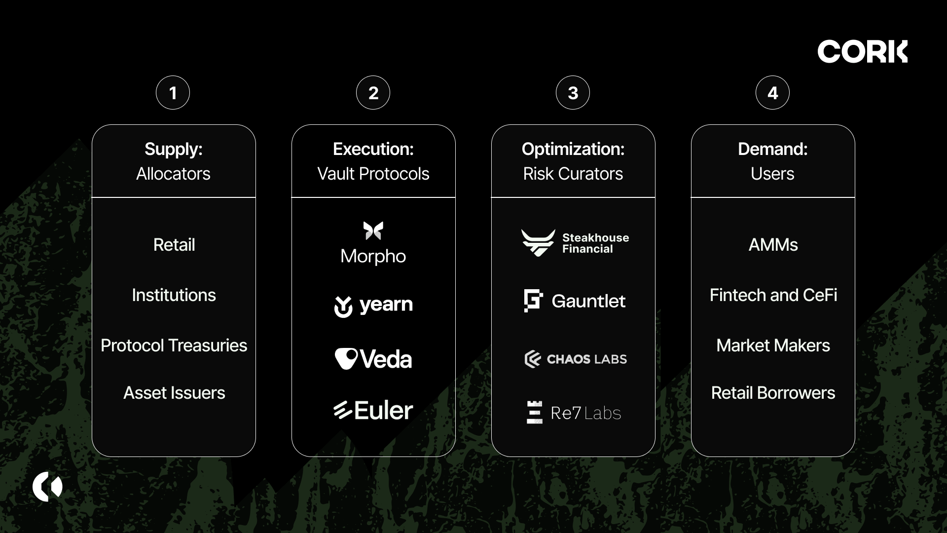 When you put the pieces together, you get a clean mental model for the participants that span across the supple side and demand side, with vault protocols and risk curators as the connective tissue: