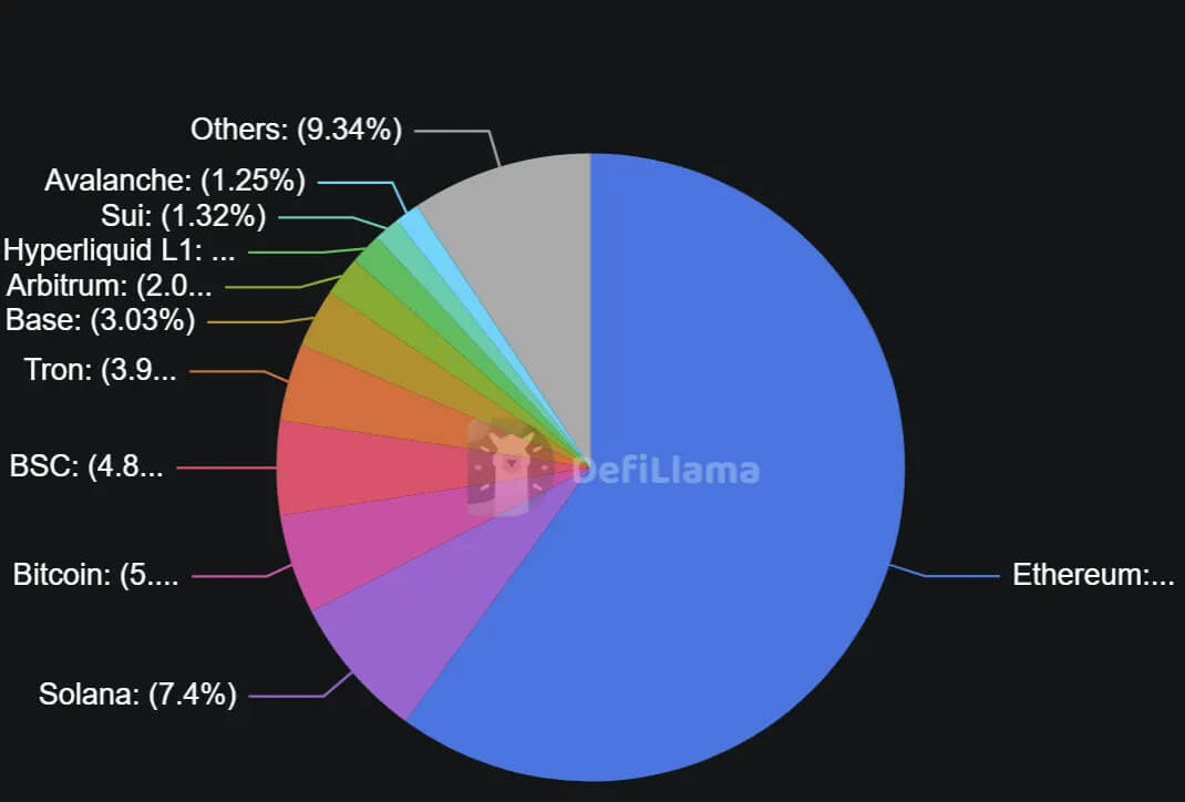DeFi’s center of gravity remains Ethereum: L1 holds roughly 60% of TVL and Ethereum L1+L2 about 70%, a share that has barely shifted in three years—classic power-law network effects. The 2024–2025 meta is stablecoins, with market cap near $300B and payment volumes rivaling Visa, as policy clarity (e.g., the GENIUS Act) opens the door to broader adoption. At the same time, institutional flows—ETFs, digital asset treasuries, and tokenized RWAs—are reshaping market structure, while LSTs/LRTs supply the base yield powering carry trades across lending, perps, and DEXs. This piece maps the leaders in each category and explains how reflexivity ties prices, leverage, and TVL into what feels like a second DeFi summer.