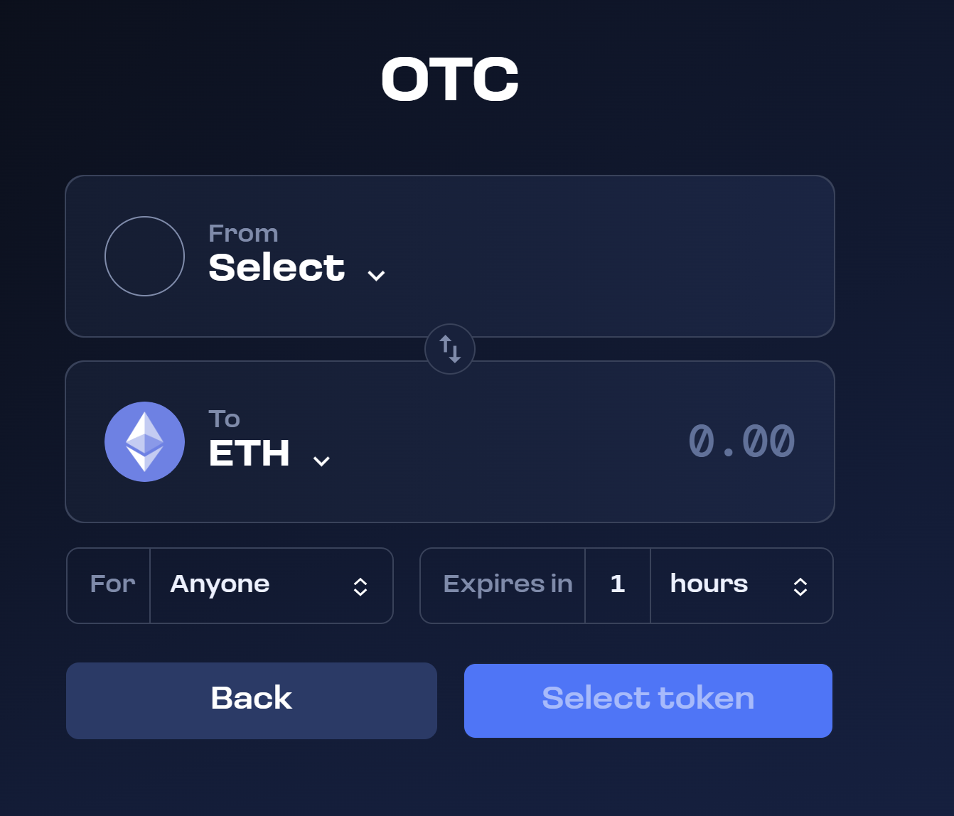Press "For" and select "Specific Taker", to enable only one counterparty to take the order. Insert the wallet address of the taker.